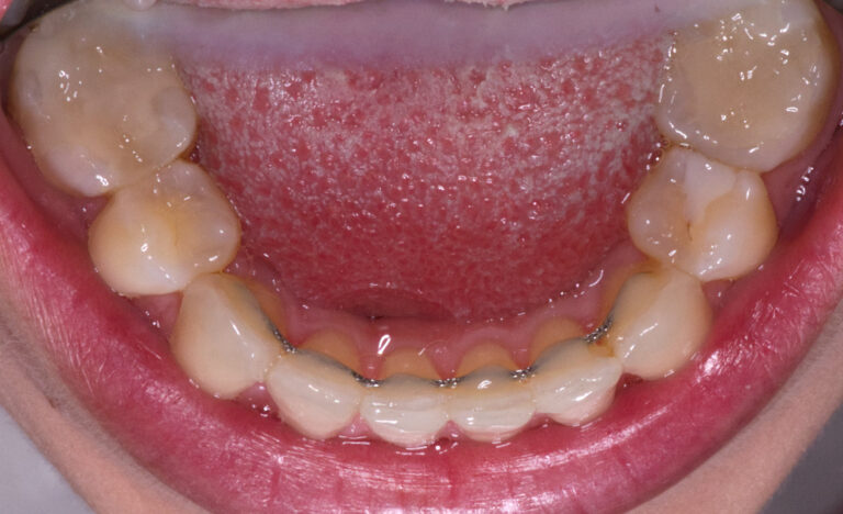 Retainer unsichtbar verklebt, um das Behandlungsergebnis dauerhaft zu halten.